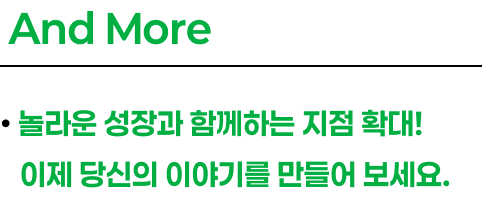 | • 놀라운 성장과 함께하는 지점 확대! 이제 당신의 이야기를 만들어 보세요. | |