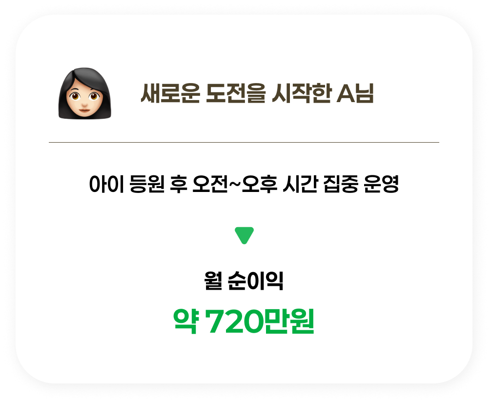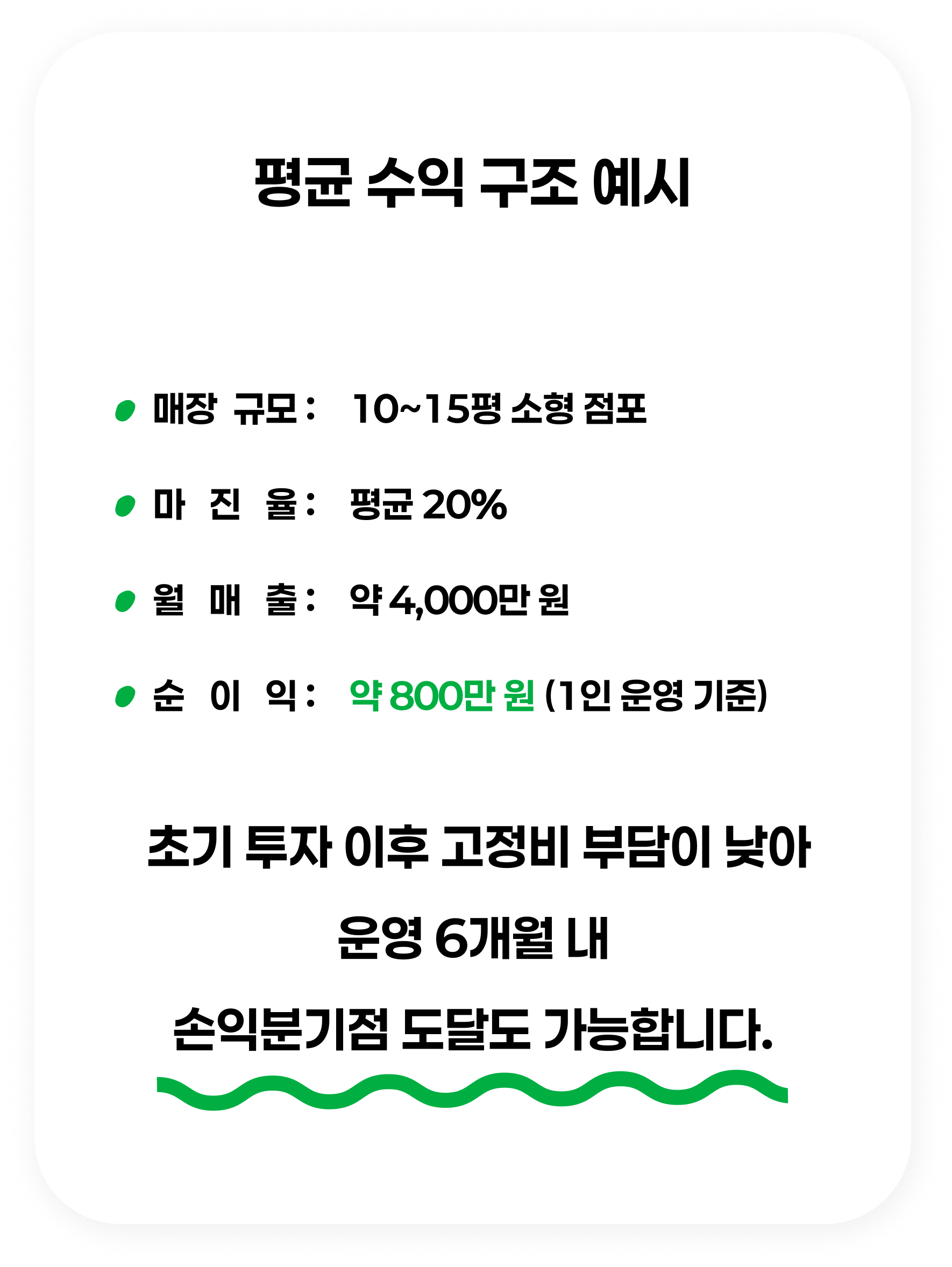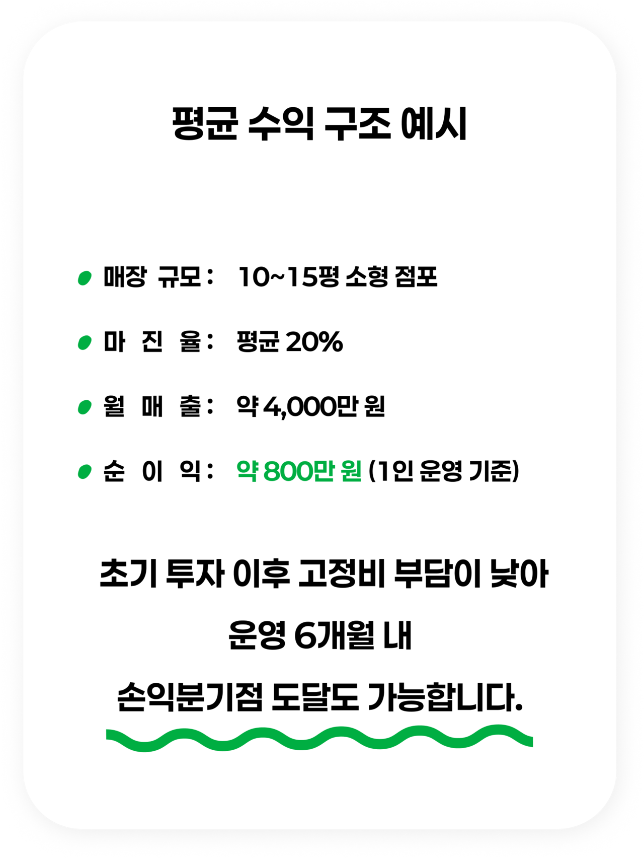 ※ 수익률 및 매출은 매장 운영 환경에 따라 상이할 수 있습니다.