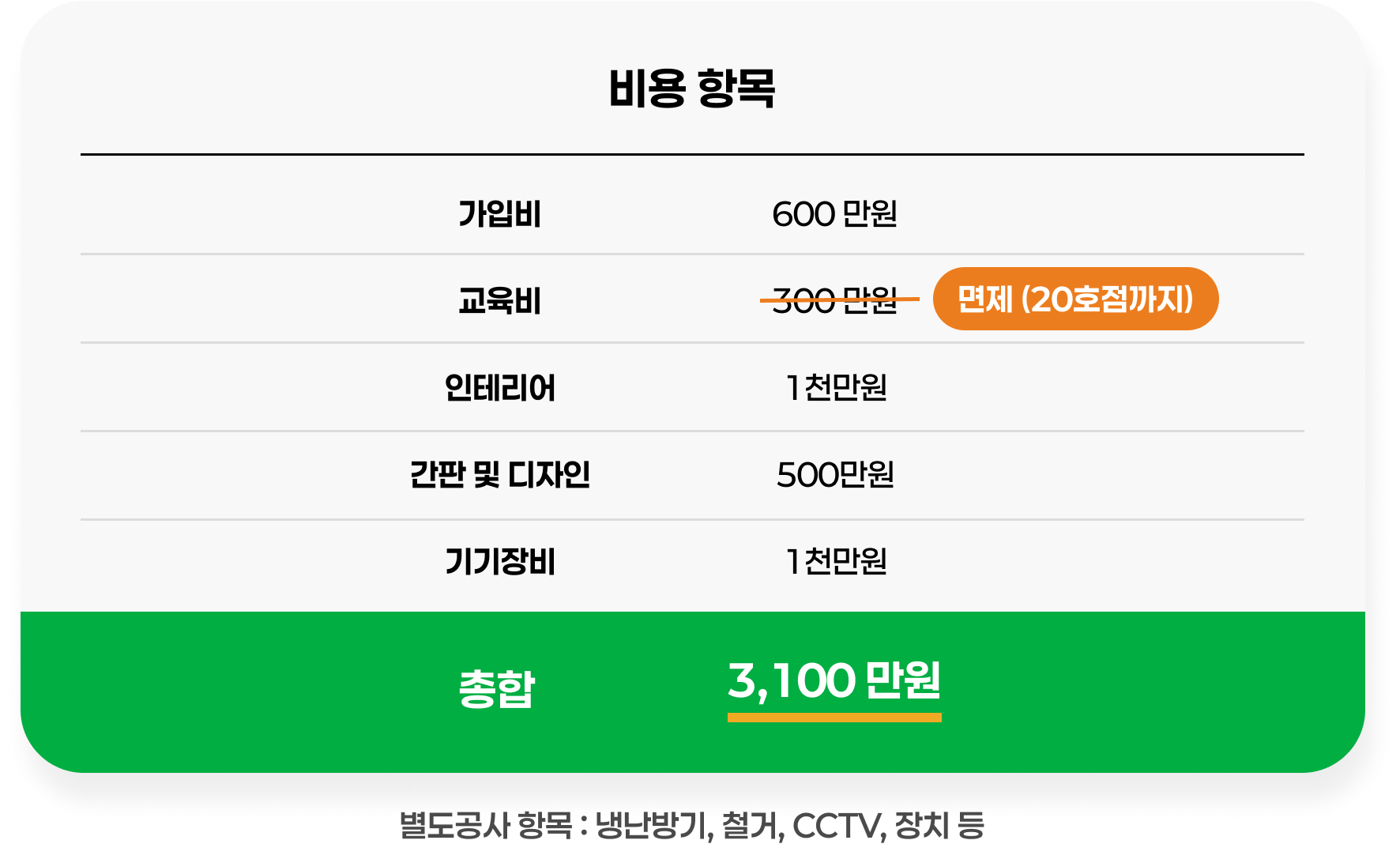 ※ 매장 평수와 환경에 따라 변동될 수 있습니다.