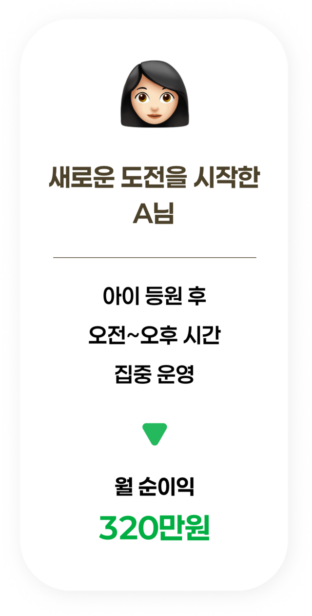 효율적인 운영 구조로 1인 창업자도 안정적인 수익을 만들 수 있어요.