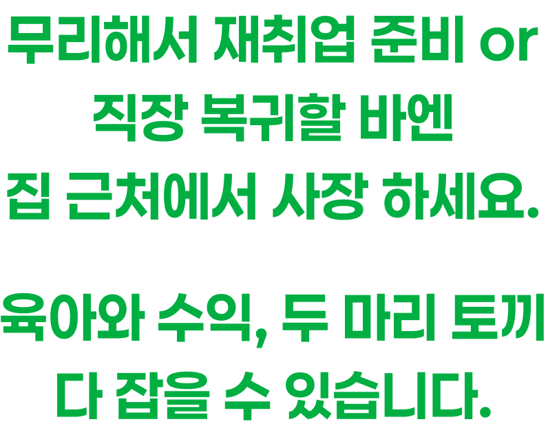 육아와 수익, 두 마리 토끼 다 잡을 수 있습니다.