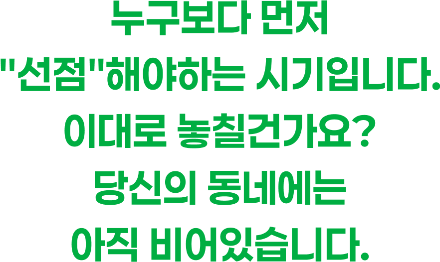 이대로 놓칠건가요? 당신의 동네에는 아직 비어있습니다.